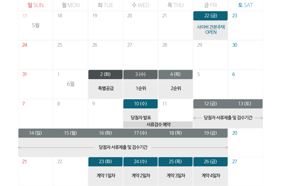 납부일정 : 하기 중도금 날짜표 확인